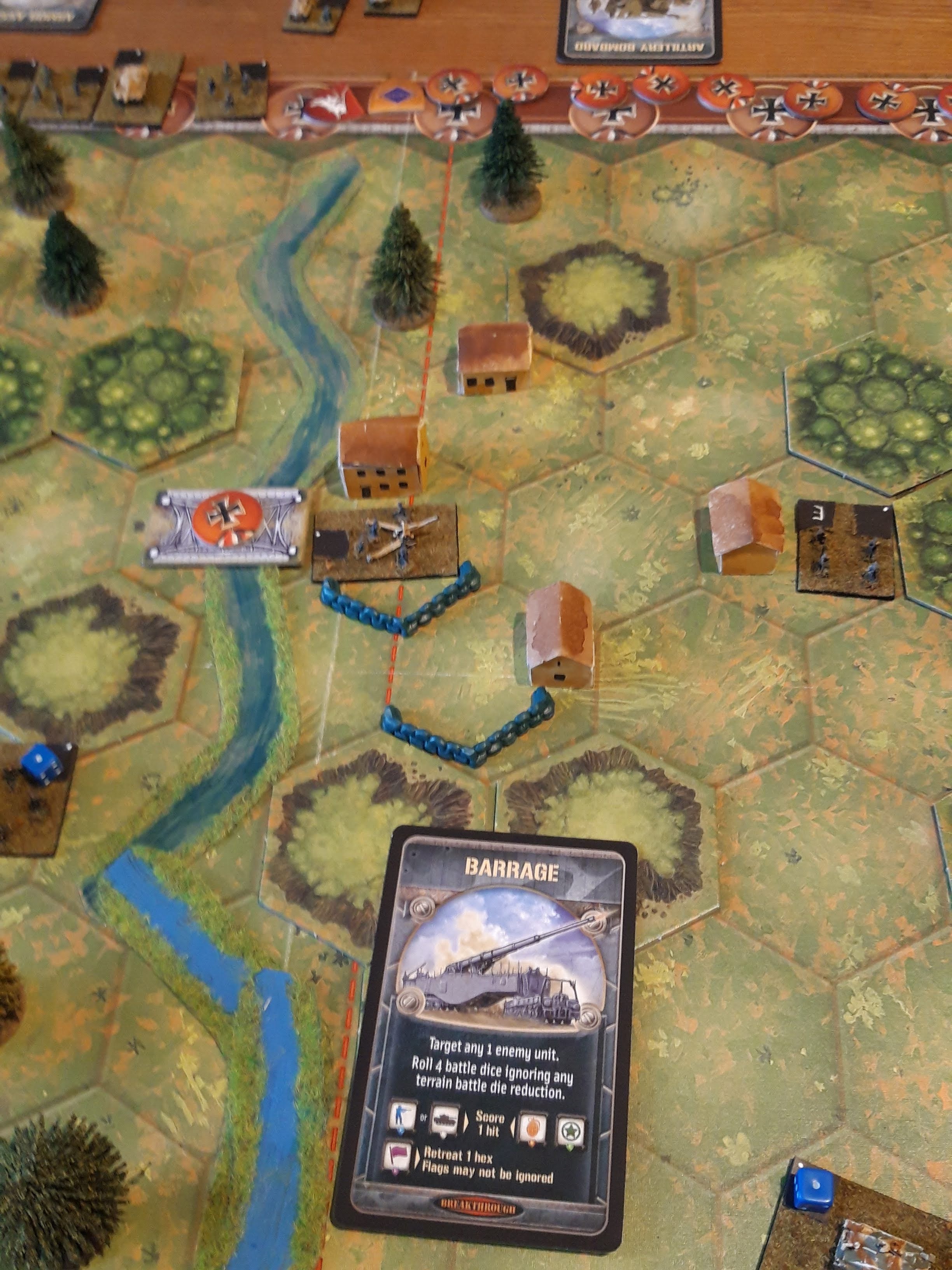 The bridge is now contested so the Germans drop to 10VP and now the Allies are on 11.
