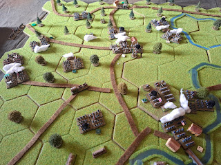 If I was doing this again I'd have a think about siegeworks, and I think the simplest thing to do is allow units in them to ignore retreat results from fire. I also didn't really get Hookers command problems right. I should have essentially only let him move half his army each turn, either with scenario specific rules or revisiting the command system in the rules.