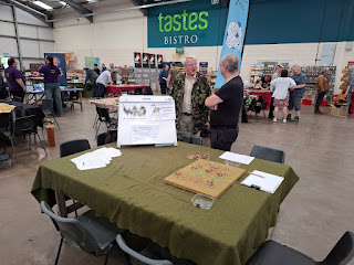 Our stand didn't take much setting up, and we've done this sort of thing many times before. We had a very nice roomy spot, plenty of space to get chairs around the table. I had a bit of a run around once we were set up and picked up a couple of items on my shopping list - some dark blue paint and some 1/144th scale US decals. I also had a look at 'plastic kit mans' stall but sadly his stock of Zvezda stuff shows no sign of getting any larger.